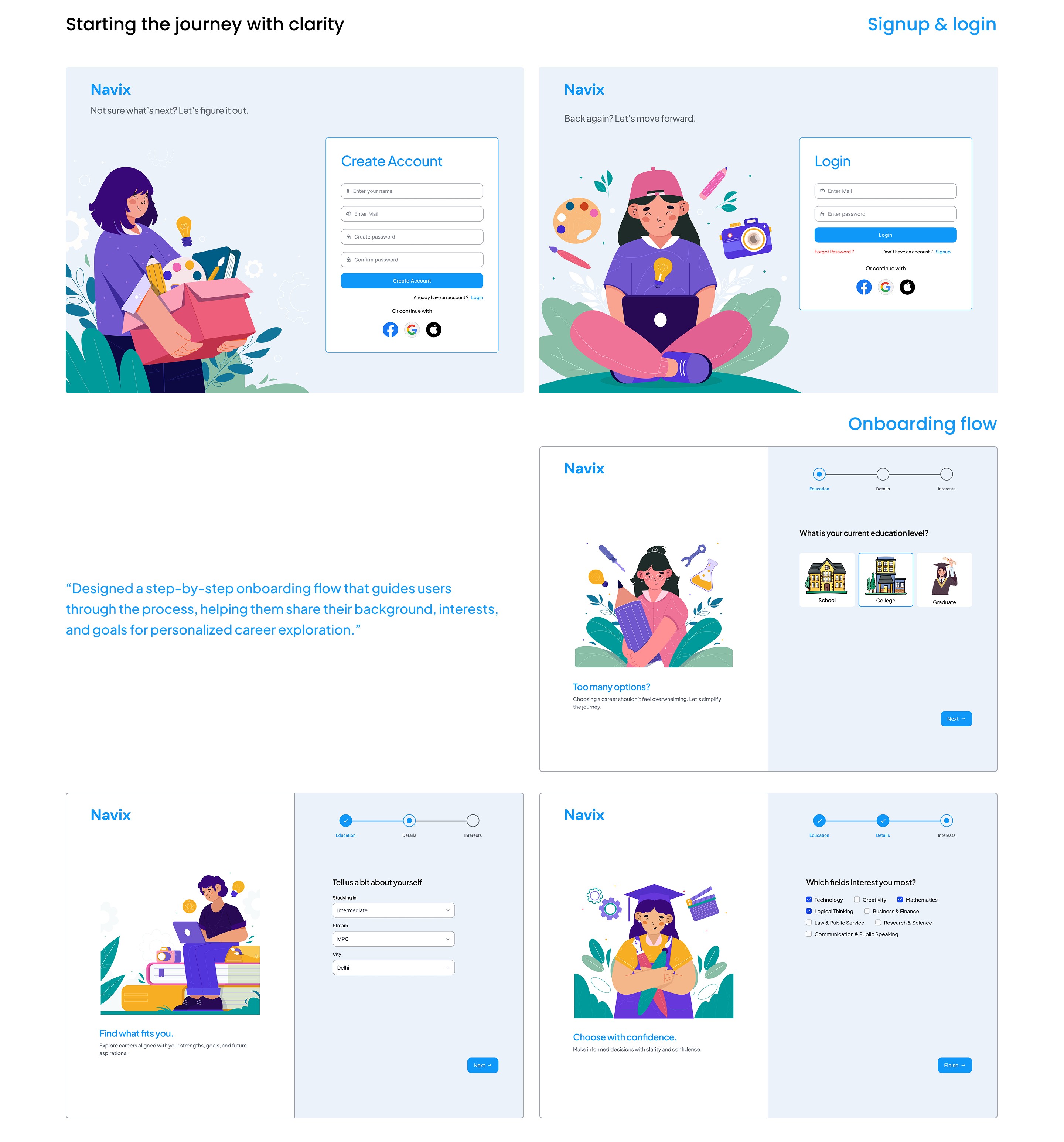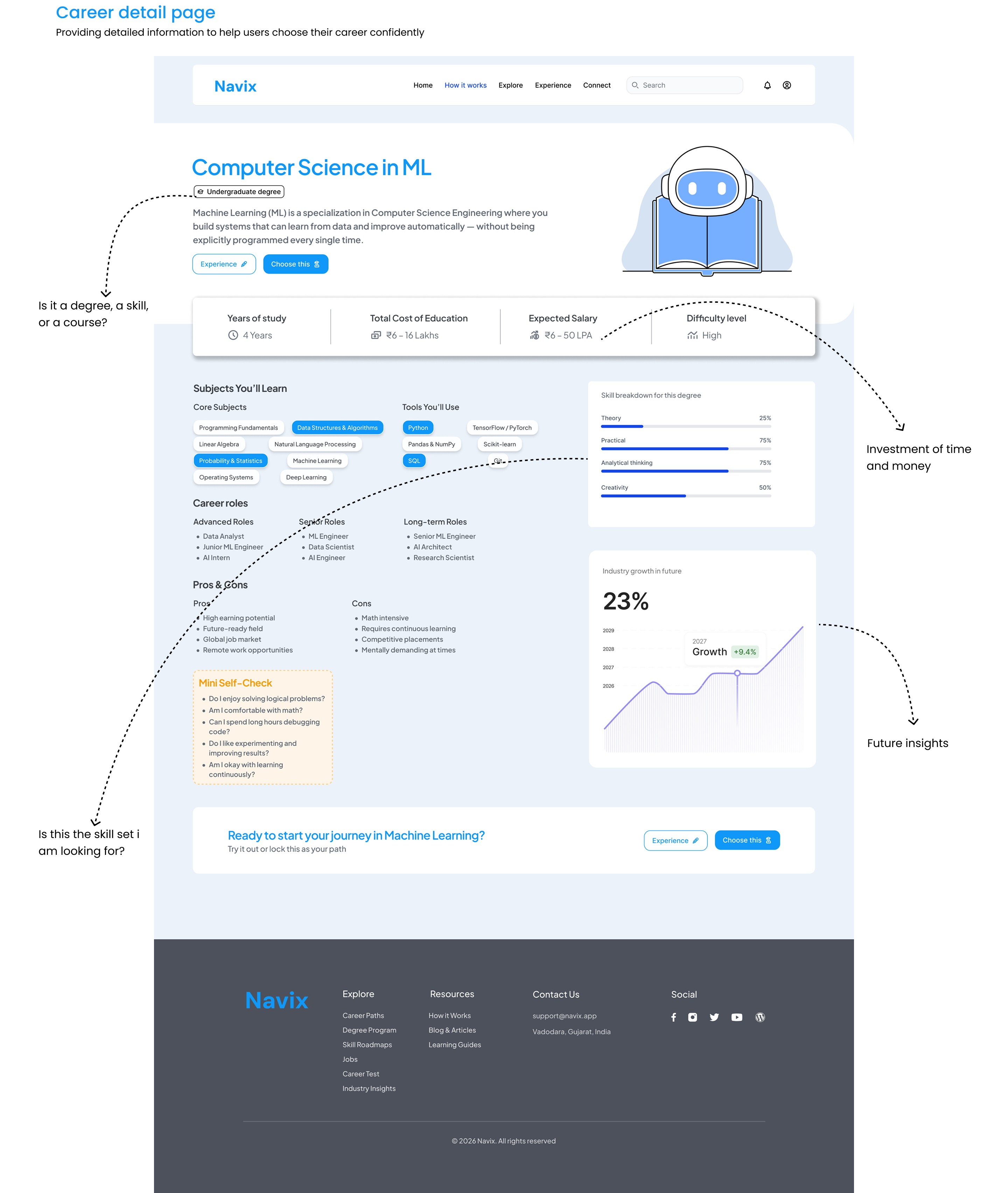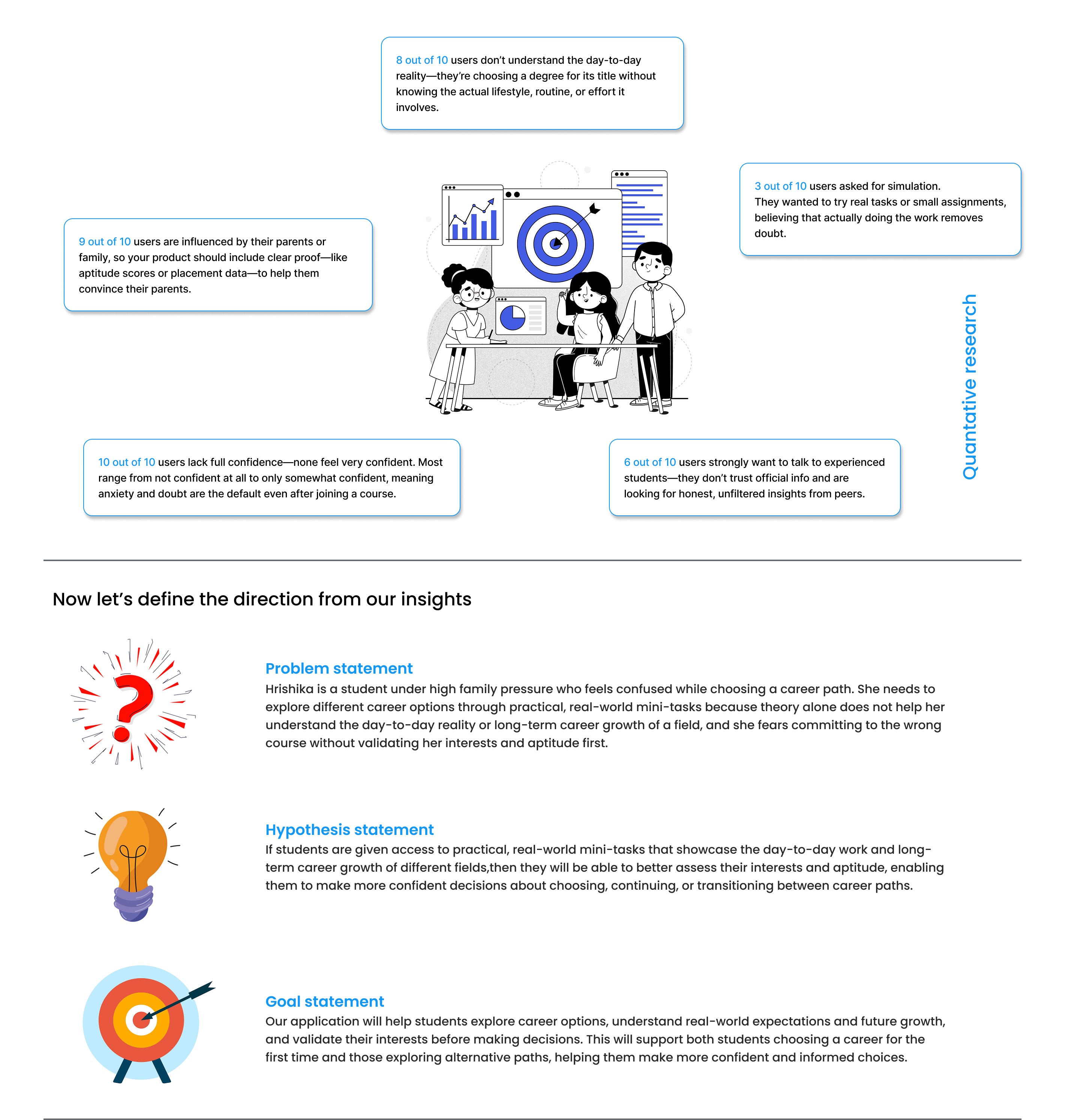 Students often feel overwhelmed and uncertain when choosing a career due to a lack of clarity and real-world understanding. Navix addresses this by enabling hands-on exploration of career paths, helping students validate their interests and make more informed decisions.